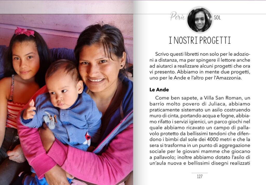 Come ben sapete, a Villa San Roman, un barrío molto povero di Juliaca, abbiamo praticamente sistemato un asilo costruendo muro di cinta, portando acqua e fogne, abbiamo rifatto i servizi igienici, un parco giochi nel quale abbiamo ricavato un campo di pallavolo protetto da bellissimi tendoni che difendono i bimbi dal sole dei 4000 metri e che la sera si trasforma in un punto di aggregazione sociale per le giovani mamme che giocano a pallavolo; inoltre abbiamo dotato l’asilo di un’aula nuova e bellissimi disegni realizzati come murales hanno dato all’asilo un’atmosfera di pace e serenità.