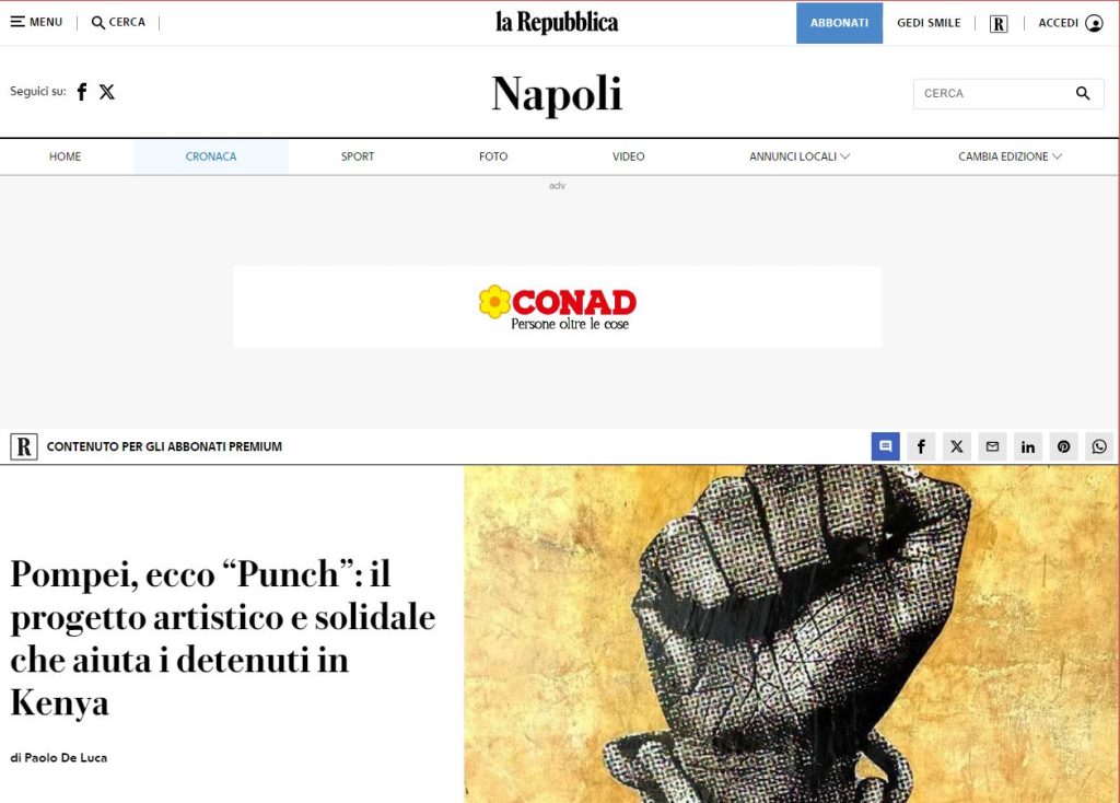 L’ARTE CHE AIUTA: “PUNCH” A POMPEI CENA DI BENEFICENZA PER IL KENYA (SALERNO.COM)