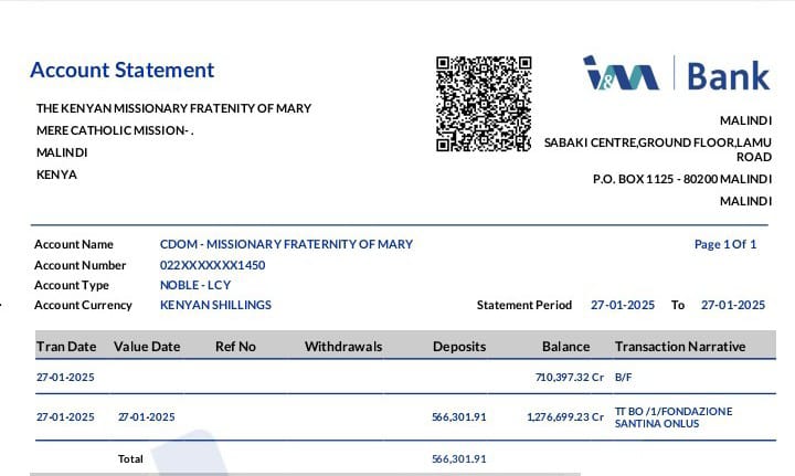 I padri Missionari della Fraternità di Maria del Guatemala ci inviano la ricevuta del denaro in scellini per un totale di sellini 566.301,91 al netto delle commissioni bancarie applicate