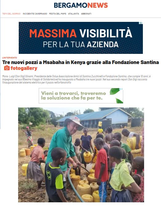 TRE NUOVI POZZI A MSABAHA IN KENYA GRAZIE ALLA FONDAZIONE SANTINA (BERGAMONEWS.IT DEL 14 MARZO 2025)