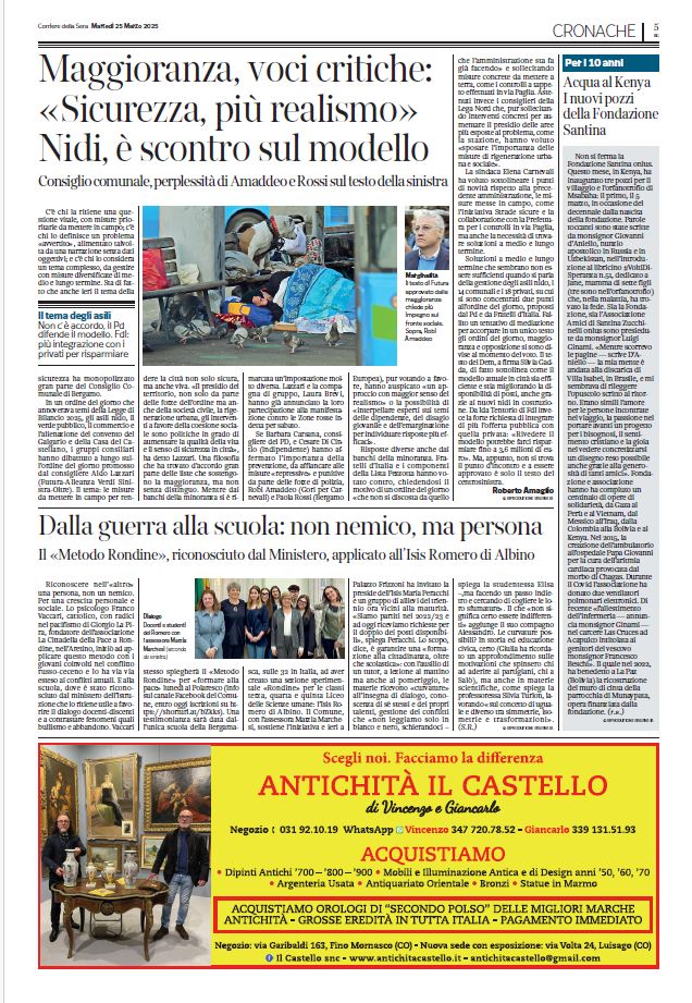Il quotidiano nazionale Corriere della Sera del 25 marzo 2025 sezione Bergamo a pagina 5 dedica nell’edizione cartacea un bel articolo sulla Presentazione del libro scritta da S.E. Mons. Giovanni d’Aniello, Nunzio Apostolico nella Federazione Russa ed in Uzbekistan e riguardo i 10 ani di attività della nostra Fondazione, ecco la pagina