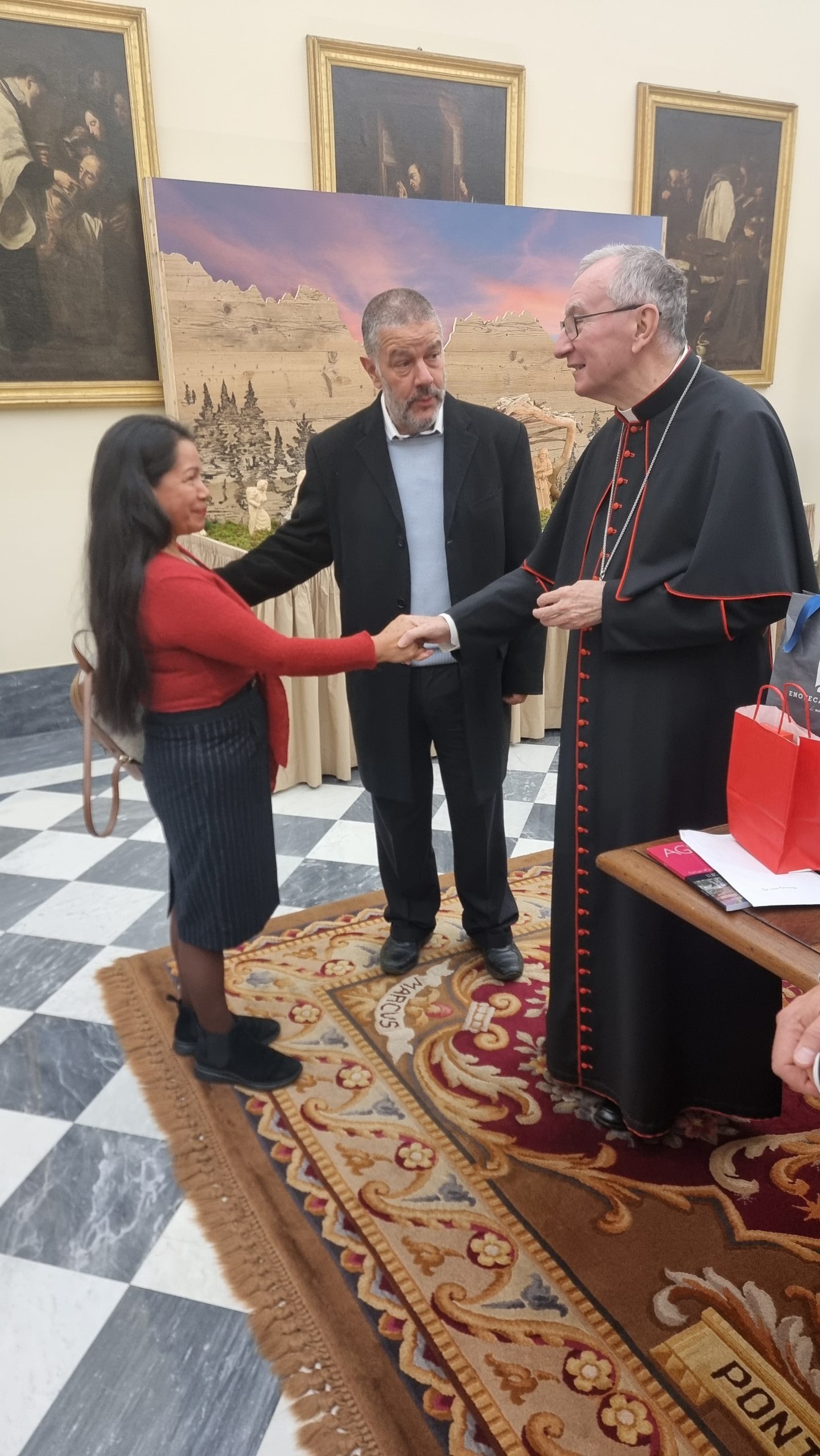 Così facendo, mostro al Segretario di Stato le ultime pagine del libretto di Halima dove si illustra l’iniziativa. Il cardinale le sfoglia e mi pone alcune domande, si complimenta con i piccolini dell’asilo… e allora sfrontatamente dico a lui: “Don Pietro, mi fai un ultimo regalo? Mi registri un videomessaggio per le famiglie dei piccolini? Sai, per le norme COVID non posso visitare le famiglie, nei prossimi giorni concluderò il giro degli asili, registreremo un video per ogni paese ed alla fine del video vorrei mettere il tuo saluto, intendiamoci bene, sono poche centinaia di persone e il video in YouTube è destinato a rimanere senza alcuna visibilità, solo le famiglie interessate”. Il cardinale sorride e mi dice: “Perché no! Certo, se può fare del bene a queste famiglie lo faccio volentieri. Si vede che per tanti anni hai avuto a che fare con i mass media e con i social”.