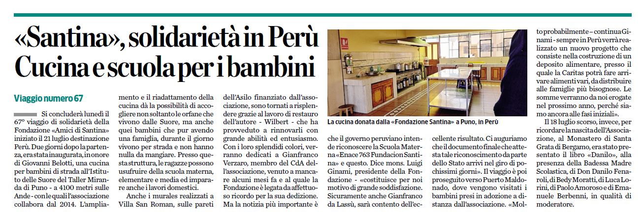 IN DATA 9 AGOSTO 2025 L’ECO DI BERGAMO DEDICA UN BELL’ARTICOLO ALLA NOSTRA OPERA IN PERU’ LO SI PUO’ LEGGERE QUI