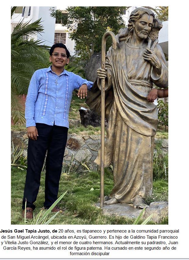 Mi chiamo Jesús Gael Tapia Justo, ho 20 anni; sono originario di Azoyú, nello Stato del Guerrero. Sono figlio di Galdino Tapia Francisco e di Vitelia Justo González e sono l’ultimo di quattro fratelli: Iván, Omar e Miguel Ángel. Attualmente vivo solo con mia madre, poiché mio padre ci ha abbandonati quando ero molto piccolo. Ho completato la scuola primaria nel mio paese. All’età di nove anni ho scoperto che mi piaceva la musica e che mi sarebbe tanto piaciuto imparare a suonare uno strumento. Iniziai a suonare la chitarra, senza rendermi conto che l’amore per la musica avrebbe completamente cambiato la mia vita. Un pomeriggio sentii un annuncio dalla parrocchia riguardo all’iscrizione al gruppo di catechismo per la Cresima: mi interessava, la Cresima, perché avevo sentito dire che fosse un requisito per ricevere il sacramento del matrimonio. Senza dirlo a mia madre, mi iscrissi al catechismo. Una delle condizioni era la partecipazione alla Messa domenicale delle 10.00 per poi andare a lezione. Va detto che la mia famiglia non era molto praticante e non avevamo l’abitudine di andare a Messa. La prima domenica non andari, perché proprio non ricordavo che la domenica ci fosse la Messa. Mi preparai, però, per andare la domenica successiva, ma quando arrivai in chiesa, non sapevo cosa fare. Mi sedetti nell’ultimo banco per poter chiacchierare o usare il telefono. Ma con mia sorpresa, vidi che c’era anche il mio amico, quello con cui suonavo la chitarra, e vidi che c’erano anche altri ragazzi nel coro, e gli sorrisi da lontano. Alla fine della Messa venne per invitarmi a far parte del coro giovanile. Gli dissi di no, perché quel genere musicale non faceva per me, ma poi fu anche lo stesso sacerdote a invitarmi. Non rifiutai per paura; poi mi accorsi di essere davvero emozionato e nervoso perché non mi ero reso conto che, in realtà, mi piaceva molto essere parte del coro. Mi appassionai: mi accorsi che suonare nel coro mi piaceva davvero tanto, al punto che provavamo tutti i giorni. Dopo soli due mesi il parroco mi nominò coordinatore del coro: non sapevo cosa fare o dire. Mi affidai semplicemente a Dio e lasciai tutto nelle Sue mani. Un anno dopo, il mio parroco fu sostituito e arrivò padre Inocencio Silverio Maura. Un aspetto peculiare del suo ministero era l’amore e la vicinanza per gli indigeni. Fu con lui che nacque il mio interesse per il sacerdozio – anche se del sacerdozio non sapevo assolutamente nulla, nemmeno dove studiassero per prepararsi né cosa studiassero … Poi, un pomeriggio padre Inocencio mi comunicò che ero stato iscritto a un programma di pre-seminario, poi annullato a causa della pandemia di Covid-19. Grazie a Dio abbiamo potuto seguire il programma pre-seminario in modalità virtuale, il che mi ha regalato una grande esperienza spirituale. Quando fui accettato al Seminario Minore la mia famiglia non era del tutto d’accordo. Un evento particolare ha segnato profondamente il mio percorso vocazionale: il giorno prima di partire per il seminario, il 28 agosto 2020, morì mio nonno materno; poche ore prima di morire, mi lasciò queste parole: “Combatti per ciò che vuoi e per ciò in cui credi”. Questo suo messaggio mi ha accompagnato in questi anni di formazione, fin dal Seminario Minore. Al secondo anno del Seminario Minore, ricevetti la triste notizia che padre Inocencio Silverio, il parroco che tanto mi aveva sostenuto in quegli anni, era mancato il 4 novembre 2021. Ero riuscito a parlare con lui ancora qualche giorno prima della sua morte e in quell’occasione mi lasciò alcune parole che mi toccarono profondamente: “Che il tuo modello sia sempre Gesù Cristo, il sommo ed eterno sacerdote”. Durante tutta la mia formazione, mi sono affidato alla protezione di San Giuseppe, all’abbraccio del suo padre putativo. Dopo aver completato il Seminario Minore, ho iniziato il Corso Introduttivo per continuare la mia formazione. Solo tre del mio gruppo sono riusciti a entrare nel corso introduttivo, che è stato per me un grande arricchimento per quello che ho potuto imparare sia dagli insegnanti che dalla gente di Petatlán. Alla fine di quell’anno sono riuscito nel Seminario Maggiore e ho ricevuto la mia tonaca, un profondo rafforzamento della mia vocazione, poiché l’avevo desiderato e atteso con impazienza. In questo primo anno ho avuto l’opportunità di conoscere le diverse realtà pastorali alle quali un sacerdote deve prepararsi. Ho avuto la fortuna di far parte dell’équipe di Pastorale Vocazionale, un’esperienza ricca di sfide e insegnamenti che mi hanno aiutato a prepararmi con maggiore dedizione e ad acquisire più strumenti. Attualmente sono al secondo anno di filosofia e certamente non mi pento della decisione presa. Mi piace quello che faccio e mi piace la formazione che riceviamo, a stretto contatto con Dio e con il Suo popolo. Una cosa per cui ringrazio Dio è che la mia famiglia ora partecipa regolarmente alla Messa e i miei fratelli fanno già parte di alcuni gruppi parrocchiali e del comitato delle cappelle del mio quartiere. Dio è stato veramente buono con me.