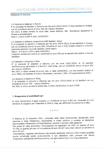 Page 5 - Bilancio Associazione onlus Amici di Santina Zucchinelli 2021