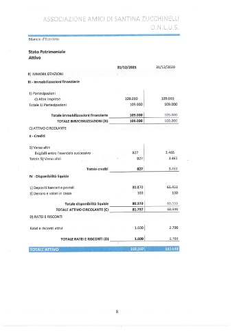 Page 8 - Bilancio Associazione onlus Amici di Santina Zucchinelli 2021