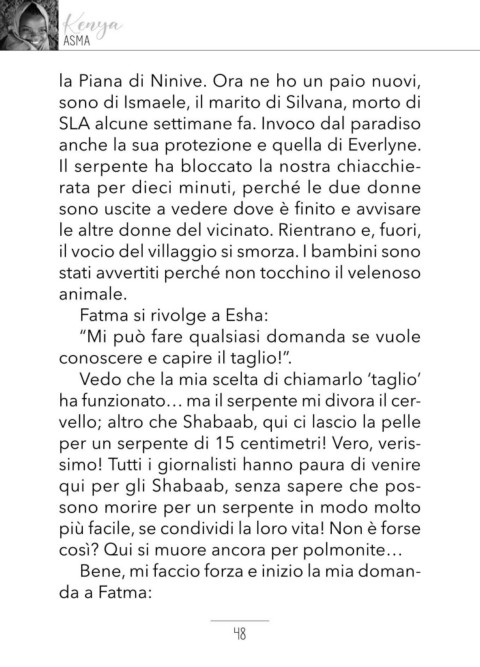 la Piana di Ninive. Ora ne ho un paio nuovi, “Ho studiato, Fatma, che in Kenya ci sono