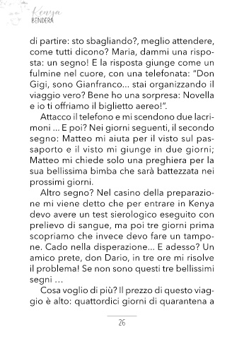 saporto e il visto mi giunge in due giorni; Vado in Kenya per andare a Lango Baya e