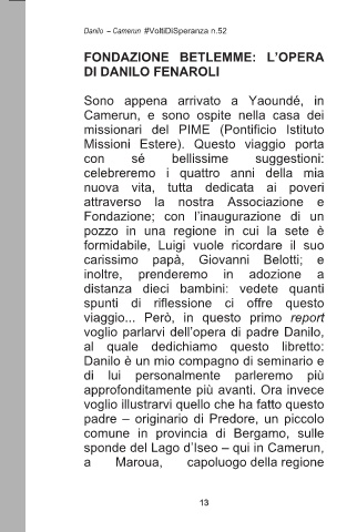 missione, dove continua, senza clamori, a attraverso la nostra Associazione e