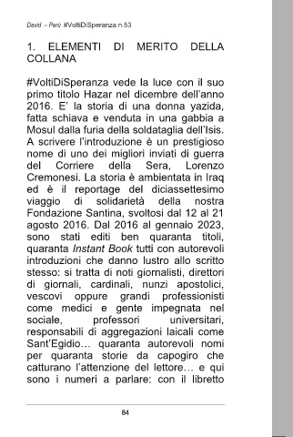 1. ELEMENTI DI MERITO DELLA LUCA #VoltiDiSperanza n.29 in formato