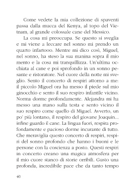 suo respiro come quello di Miguel. Avverto, un