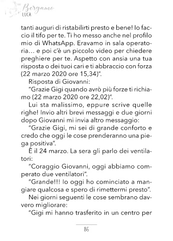 righe! Invio altri brevi messaggi e due giorni ricoverato al 'Papa Giovanni'. Faccio un passo