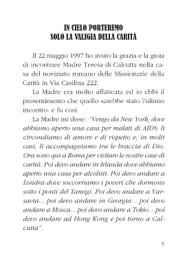 di incontrare Madre Teresa di Calcutta nella ca- Carità in Via Casilina 222.
