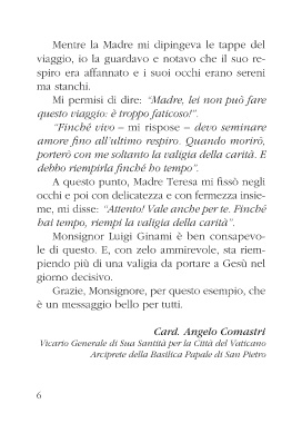 hai tempo, riempi la valigia della carità”. A questo punto, Madre Teresa mi fissò negli