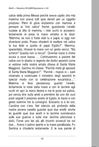 occhi mi aprì la mano destra e me lo pose sul palmo, sarebbe stato fatto il calice del figlio prete! Carolina fu