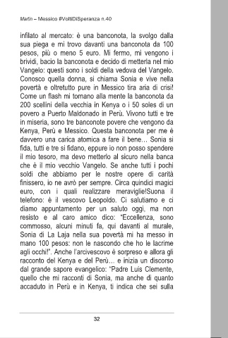 telefono: è il vescovo Leopoldo. Ci salutiamo e ci enorme responsabilità: sprecare 100 pesos di Sonia è