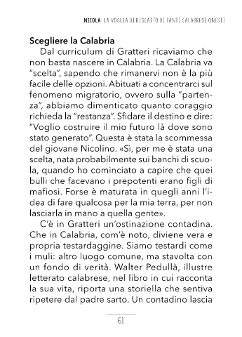 antico, di chi ha saputo farsi strada con le pro- non basta nascere in Calabria. La Calabria va