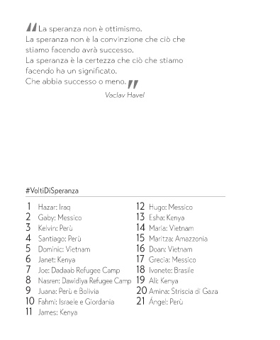 10 Fahmi: Israele e Giordania 21 Ángel: Perù blicati nella collana #VoltiDiSperanza