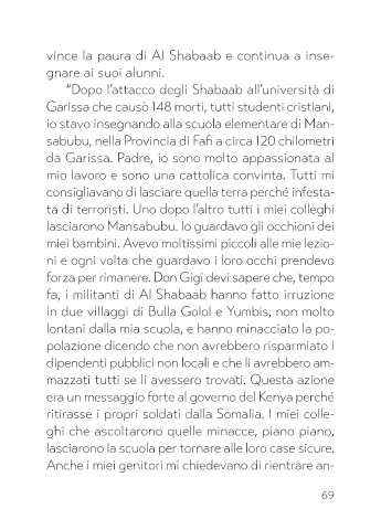 “È bello, Monica, quanto mi dici e ti fa onore. vince la paura di Al Shabaab e continua a inse-