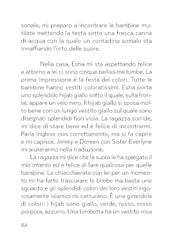 sonale, mi preparo a incontrare le bambine mu- lungo sul quale il giallo del hijab appare sgargian-