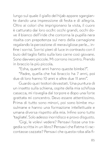 sonale, mi preparo a incontrare le bambine mu- lungo sul quale il giallo del hijab appare sgargian-