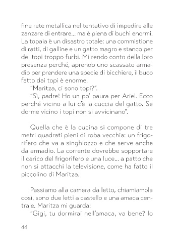 “Gigi, tu dormirai nell’amaca, va bene? Io “Senti Maritza, io ne metto un po’ ora è poi ti