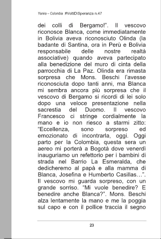 bianchi. “Blanca… mi sembra il vescovo, parto per la Colombia, questa sera un