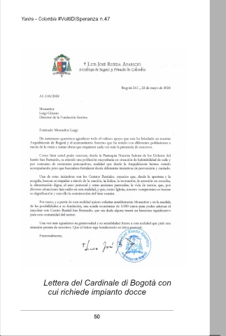 Lettera del Cardinale di Bogotà con via; poi si calma, non mi considera