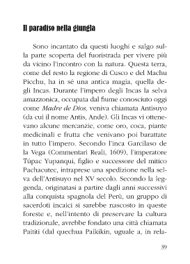 va dell’Antisuyo nel XV secolo. Secondo la leg-
