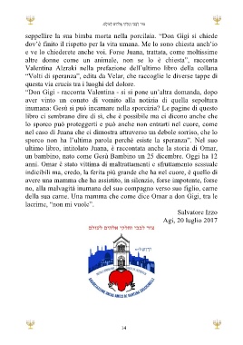 “Volti di speranza”, edita da Velar, che raccoglie le diverse tappe di